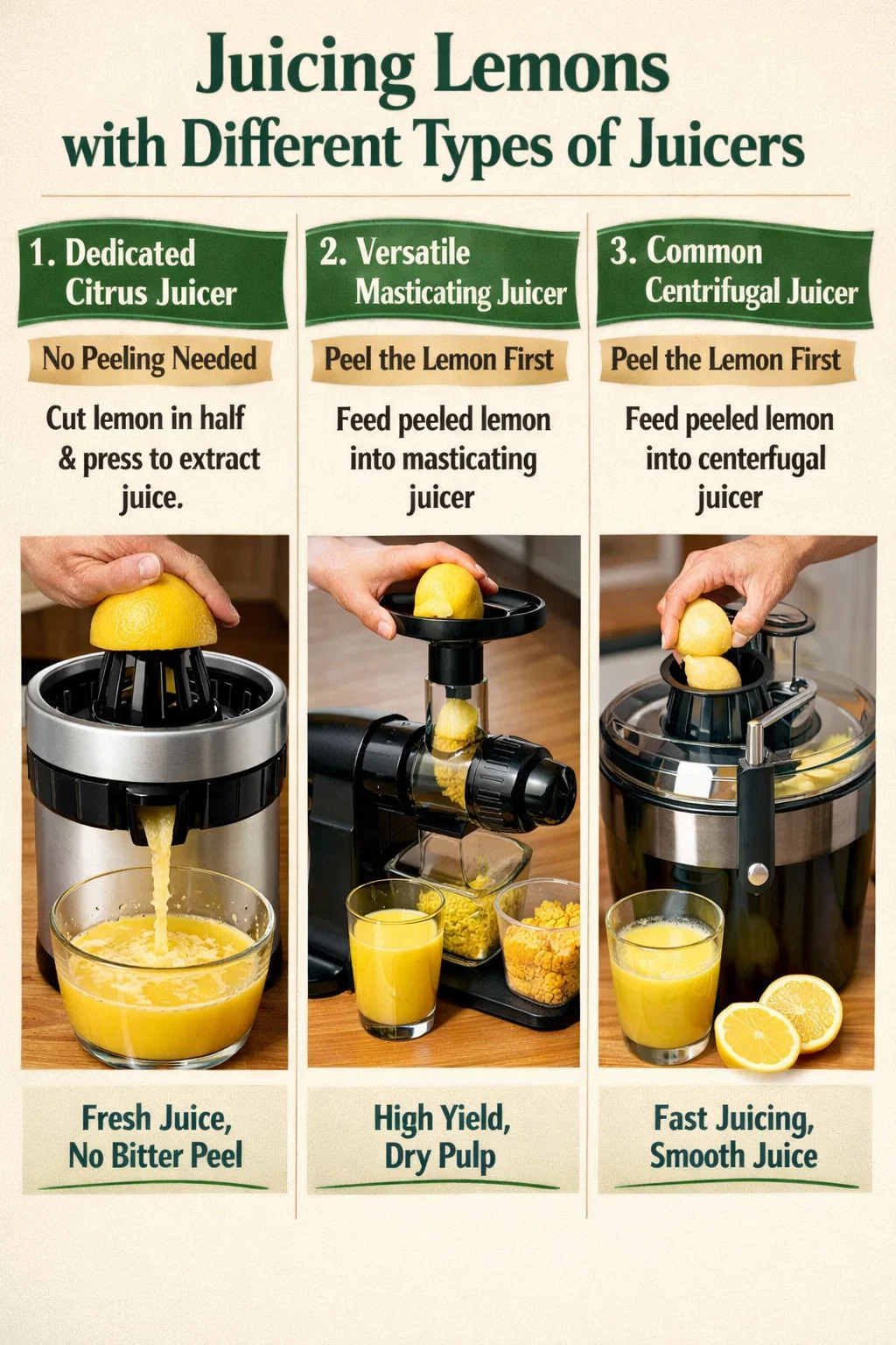 집에 저속 "분쇄"형 주서기가 있는 경우 레몬을 착즙할 수도 있지만 직접 넣지 마십시오.