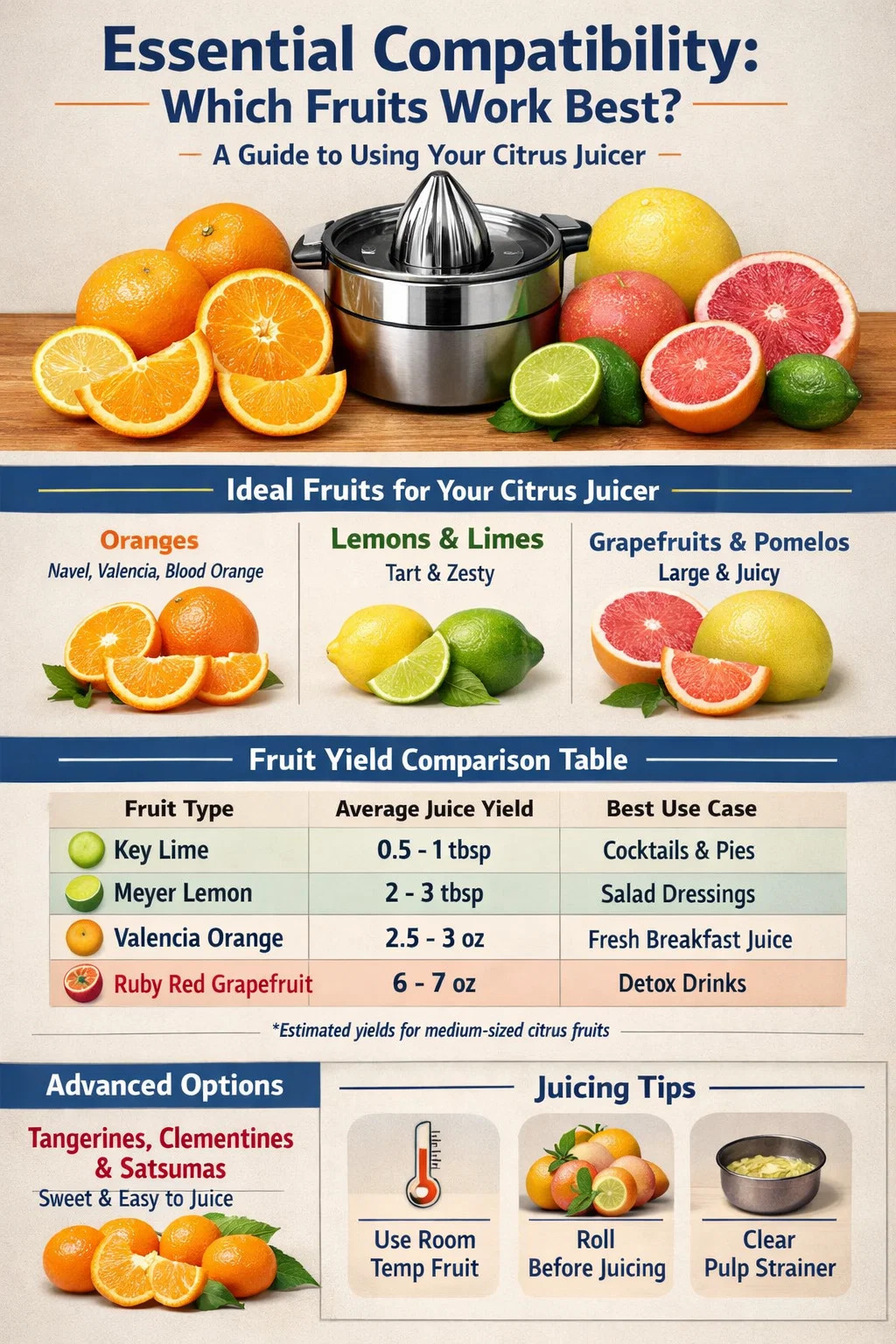 | 과일 종류 | 에이verage Juice Yield | 최고의 사용 사례 |
