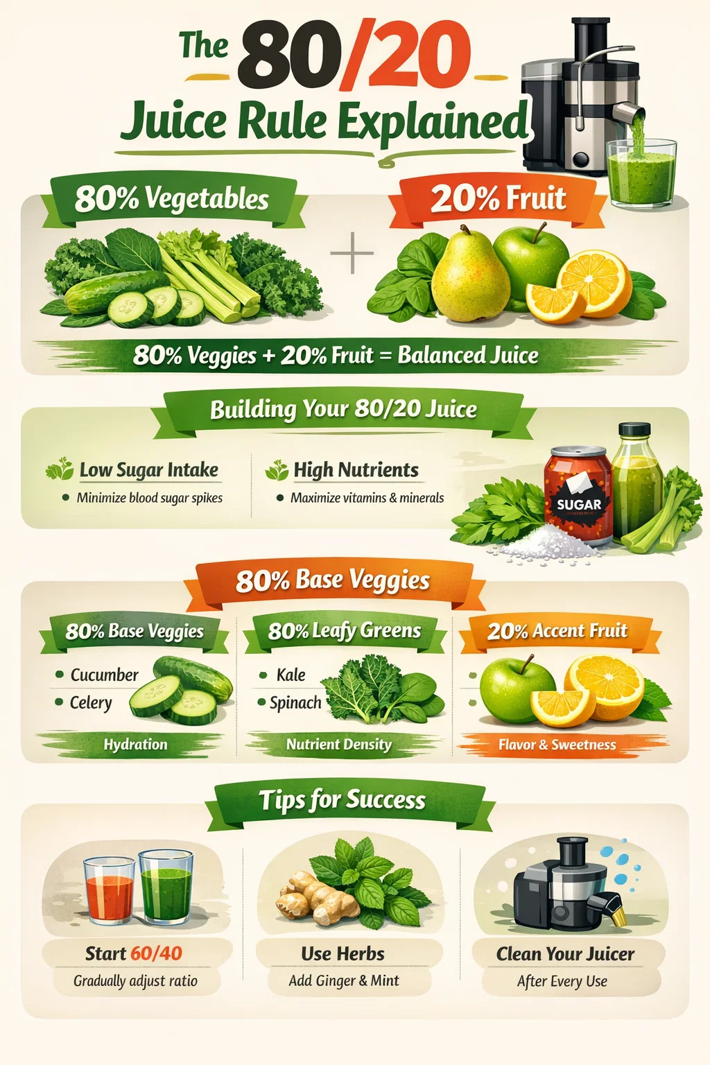 는 ultimate goal of the 80/20 rule is to turn your daily juice into a 영양이 풍부한 보충제 달콤한 간식보다는 귀하의 주서기 많은 양의 채소와 수분이 많은 야채를 처리하려면 몸에 엄청난 양의 알칼리성과 항산화 물질을 공급해야 합니다. 이 접근 방식은 장기적인 건강 목표를 지원하고, 염증 감소에 도움을 주며, 신선한 주스가 제공하는 진정한 의학적 이점을 얻을 수 있도록 보장합니다.