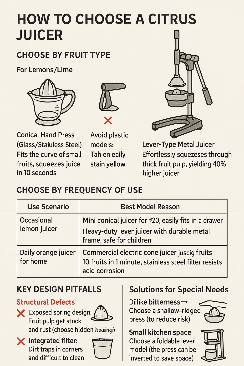 다음을 권장합니다 감귤류 과즙기 실제 사용자 경험을 바탕으로 요약된 다양한 요구 사항에 따른 유형: